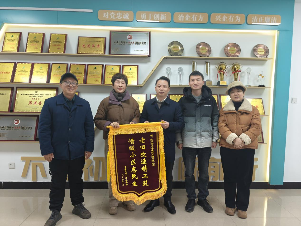 一面锦旗,是居民的认可,更是一份期许。咸宁市宁安建筑工程有限公司用精工匠心让老旧小区焕发新活力,把民生工程做到居民心坎上,让冬日的咸宁,因这份暖心的民生答卷,处处涌动着温暖的暖流。