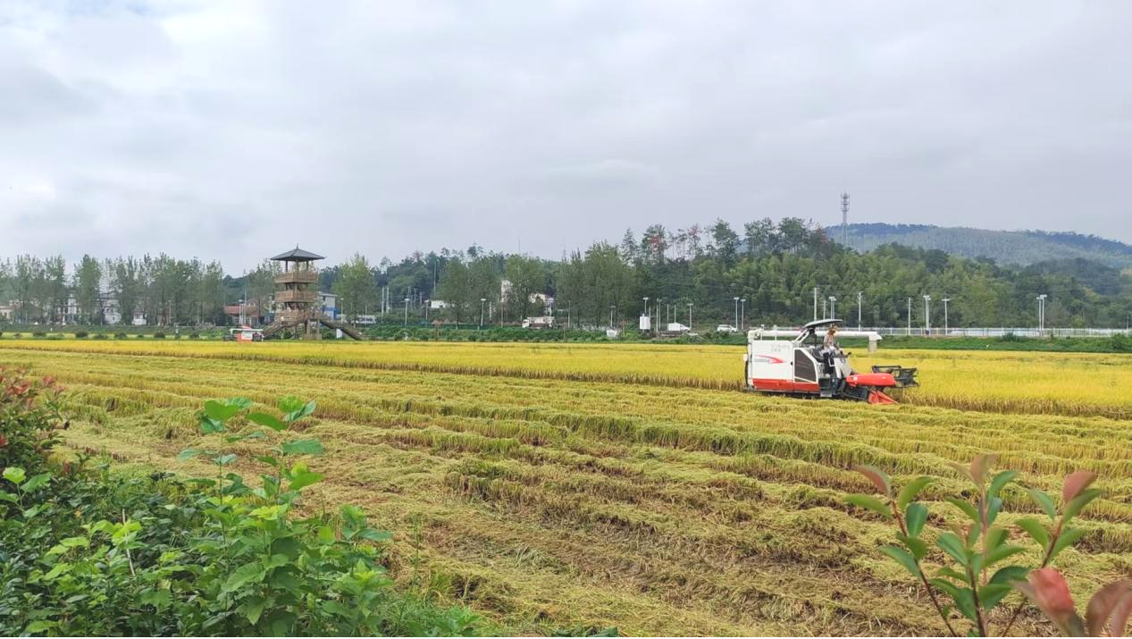 金秋九月,稻谷飘香。9月22日,高桥片区“福香9号”水稻迎来收割时节。田间机声轰鸣,110亩稻谷颗粒归仓,亩产达1000斤,总产量突破10万斤。